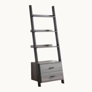 Two Drawer Ladder Bookcase Metal bar Handles Distressed Grey and Black Two Tone Color