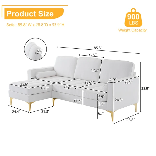 2. The overall size is 218*141*87cm , the total load capacity is about 1200 pounds, and it can seat 2-3 people. The sofa chaise is reversible according to your room decor and your preference.