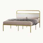 - Stylish and Functional Design – The classic beige linen fabric combined with the gold metal frame gives this queen size bed frame a modern, fashionable look. Brighten up your sleeping space.
