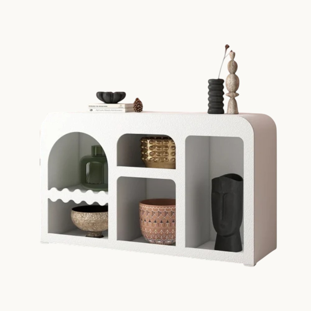 Modern White Fiberglass Console Table with Storage Stylish Home Furniture