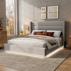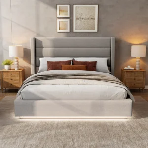 Modern-Style Oversized Greige Bed Frame with LED Lights