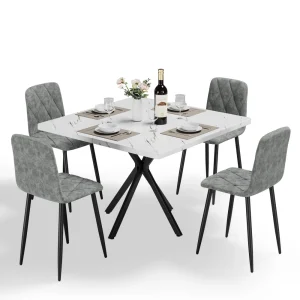 Square Dining Table Set, Mid Century Modern Square Dining Table for 4 Person, Faux Marble Tabletop, Iron Legs, Coffee Table