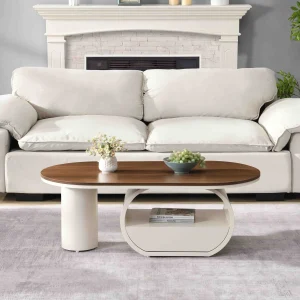Handmade Modern Luxury 47.24” White Oval Coffee Table with Storage Drawer Wooden Stone Center Table for Dining for Living Room